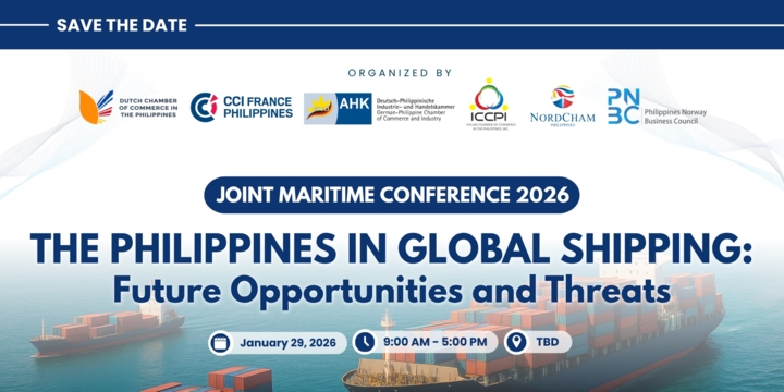 With this, the Joint Maritime Committee of the Dutch, French, German, Italian, Nordic, and Norwegian Chambers of Commerce in the Philippines is organizing the first Joint Maritime Conference: The Philippines in Global Shipping: Future Opportunities and Threats. The conference will bring together maritime experts, industry leaders, policymakers, and stakeholders to engage in critical dialogue on three key themes: